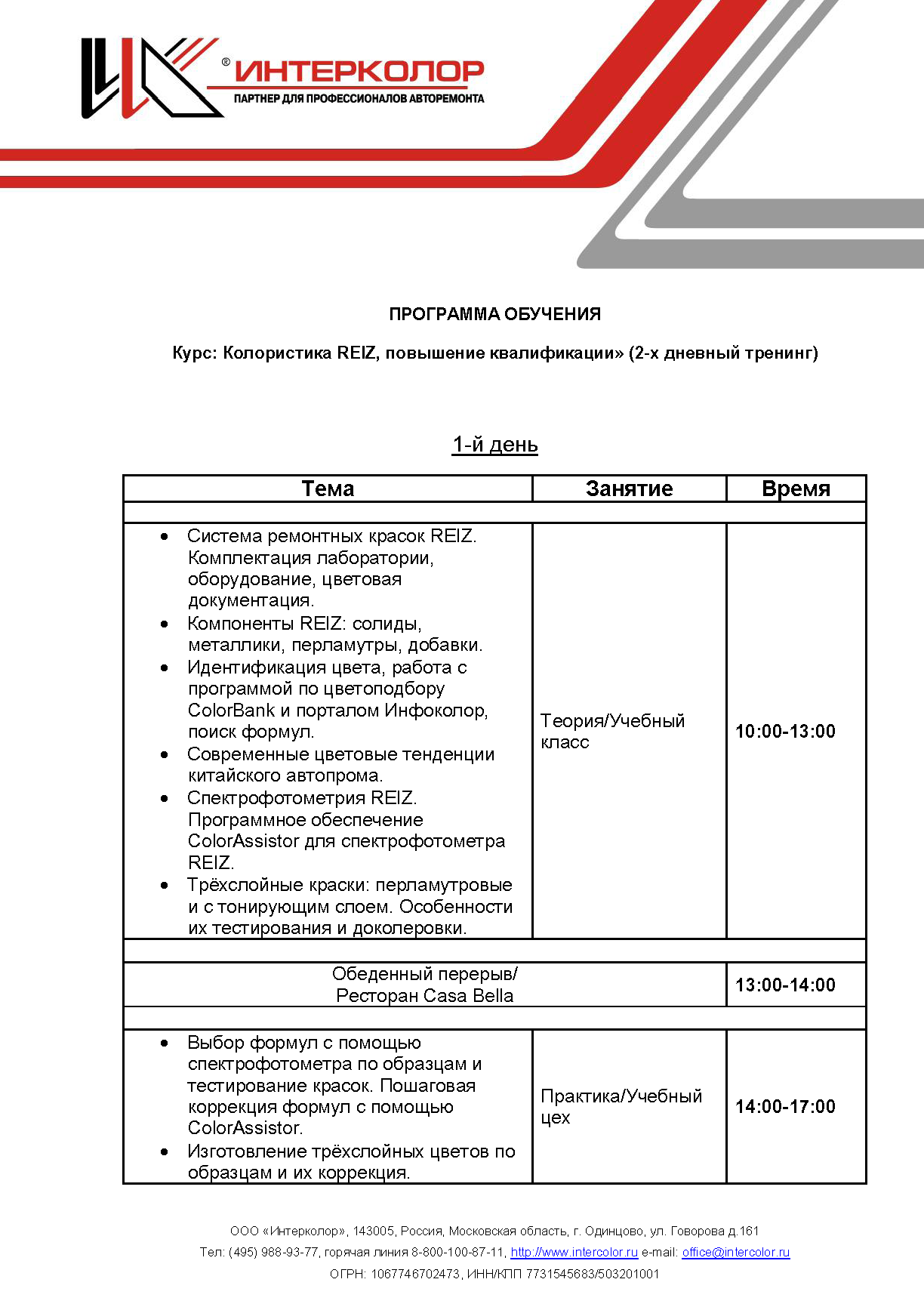 Учебный Центр "Интерколор": подготовка колористов (сервис-формулы), курсы для маляров (технология окраски), семинары по цветоподбору (колористика), технология локального ремонта, технология полировки, семинары для руководителей СТОА и мастеров цехов, выездные семинары.