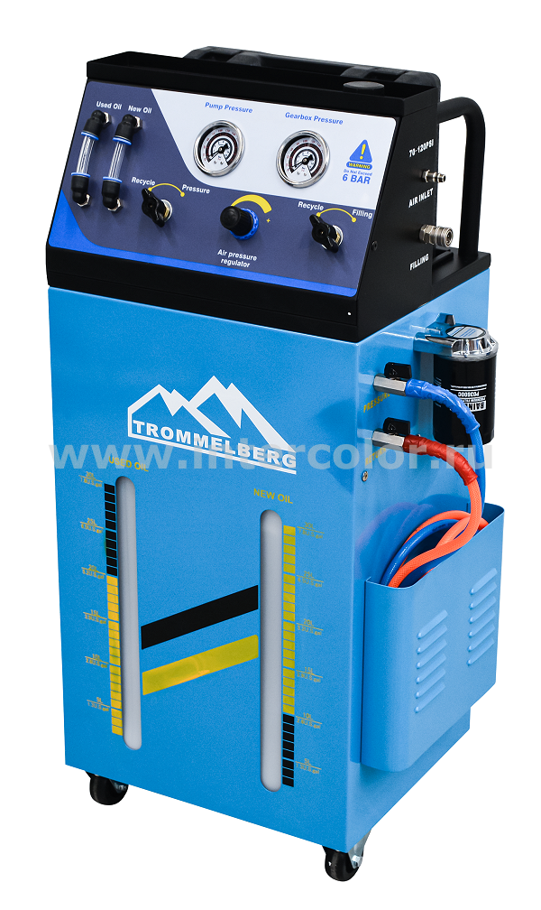 Пневматическая установка для удаления, очистки и замены трансмиссионной жидкости (ATF) в большинстве типов и моделей АКПП, трансмиссий, гидромуфт, масляных радиаторов и гидравлических трубопроводов.